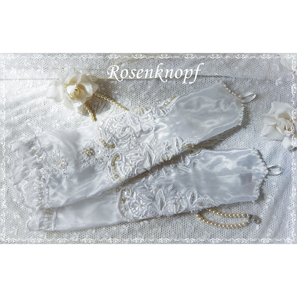♥Traumhaft schöne und extra lange Brautstulpen in strahlendem Weiß für die romantische Braut♥.