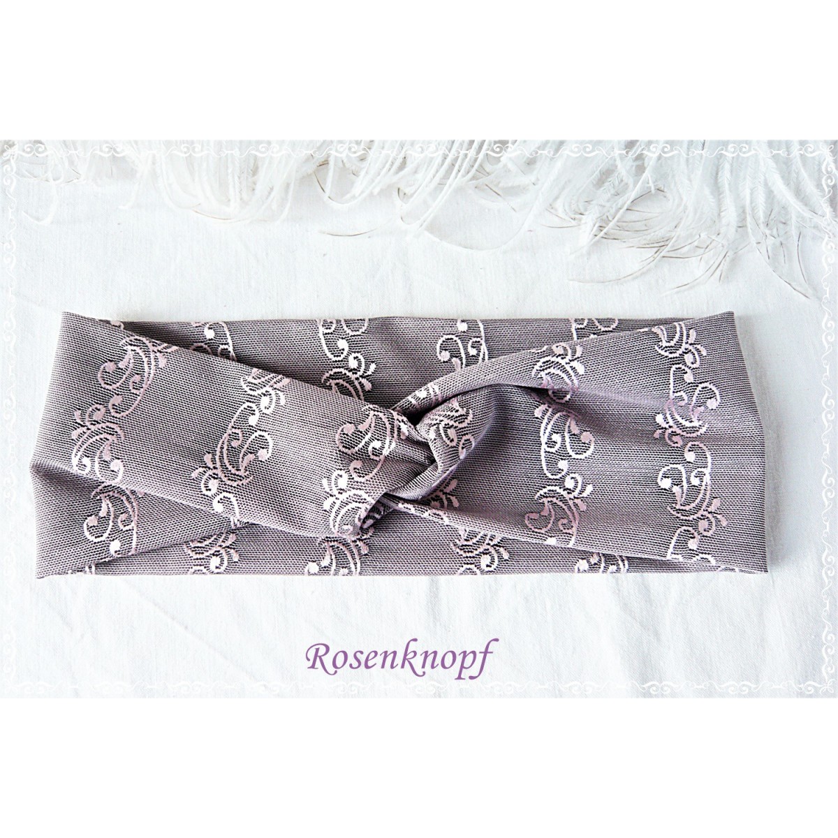 Romantische Stretchstulpen aus einer Viscose/Polyester Mischung mit floralem Muster in Altrosa.