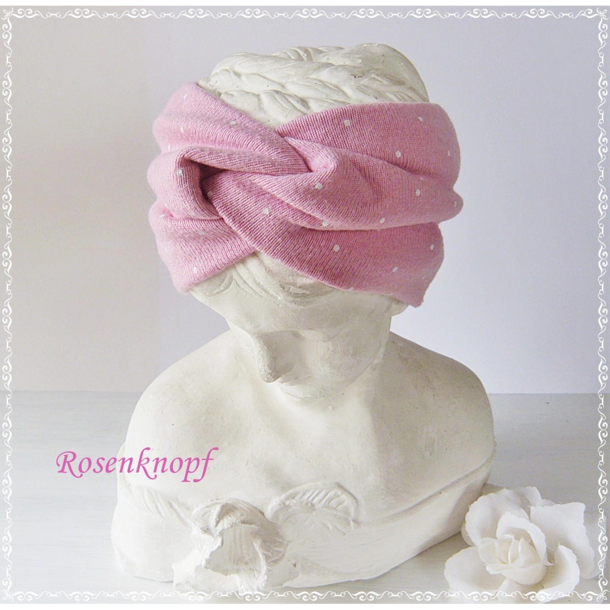 lll➤ Stirnband/Haarband aus Strickstoff in zartem Rosa mit weißen Punkten.