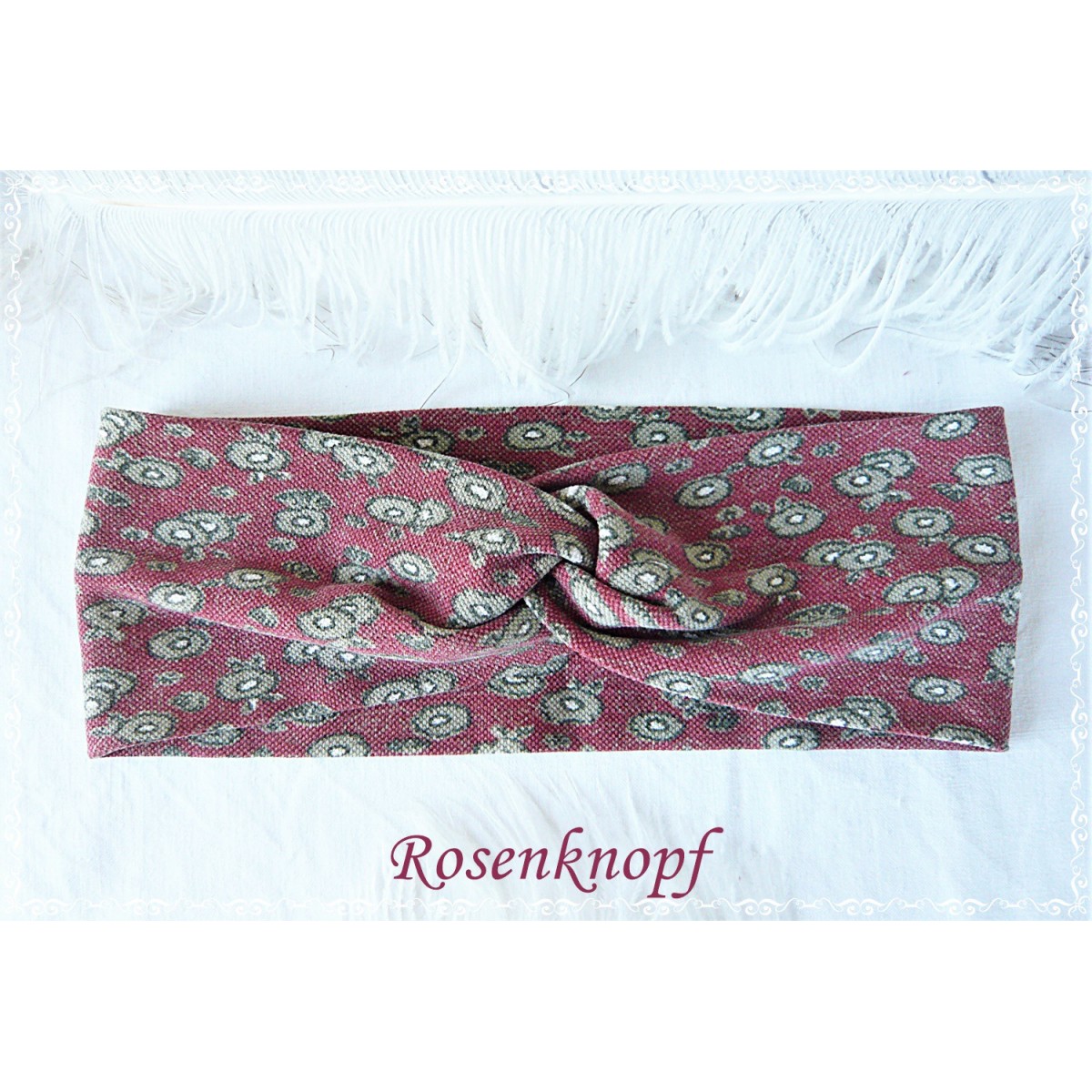 Zeitloses Stirnband aus elastischem Jersey in Dunkelrot mit Muster.