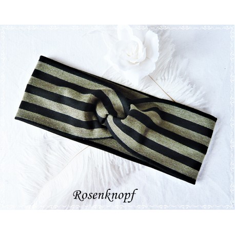 Zeitloses und einzigartiges Stirnband aus elastischem Jersey in Schwarz und Braunbeige gestreift.