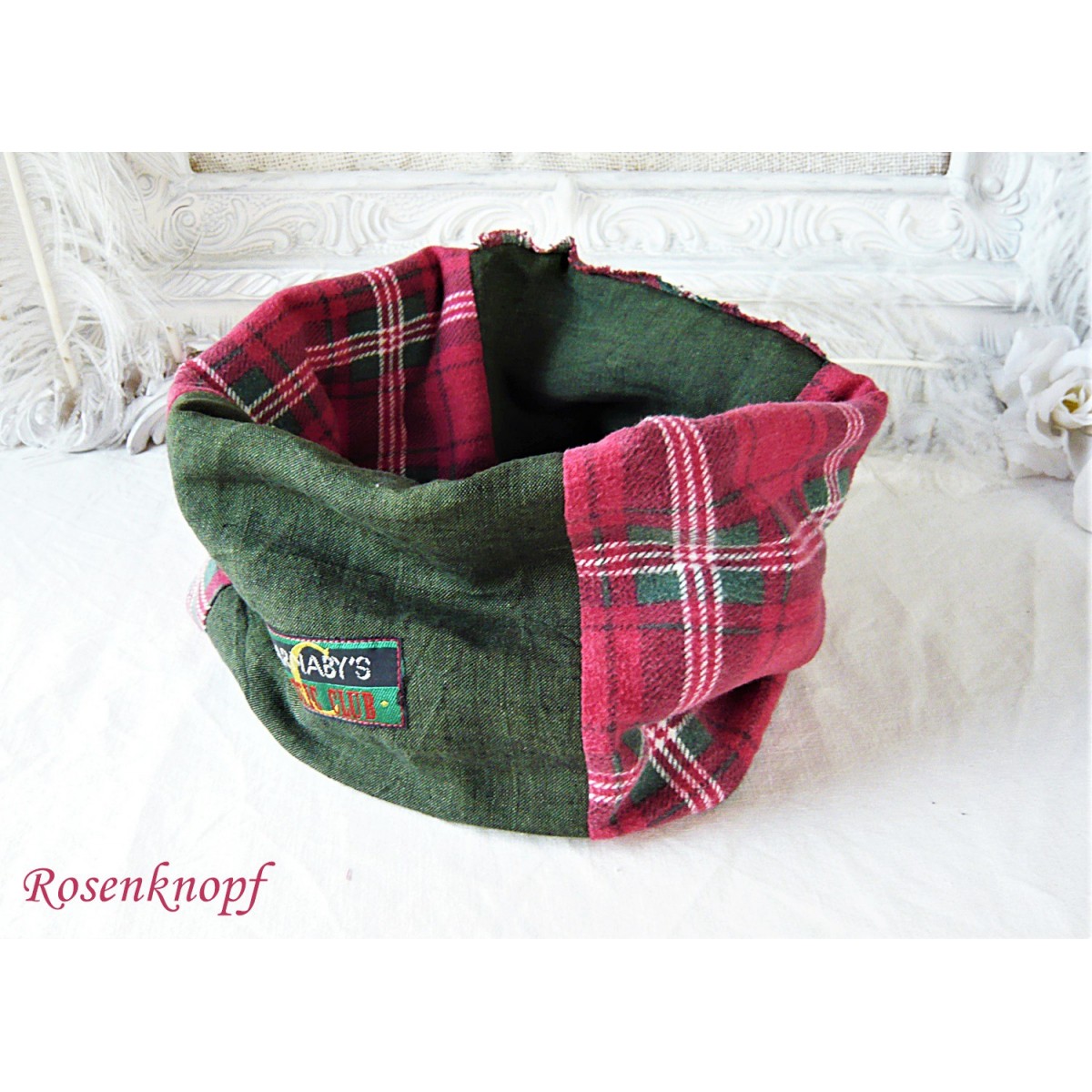 lll➤ Upcycling Schlupfschal/Loop für Herren aus Dunkelrot-Grün-Ivory kariert und Dunkelgrün