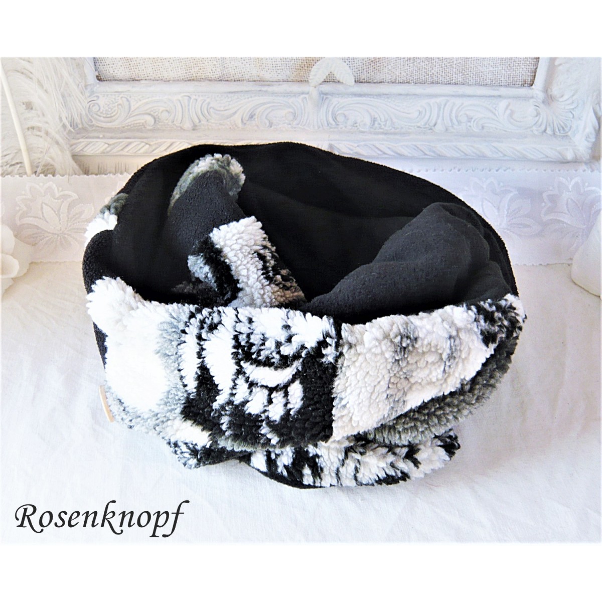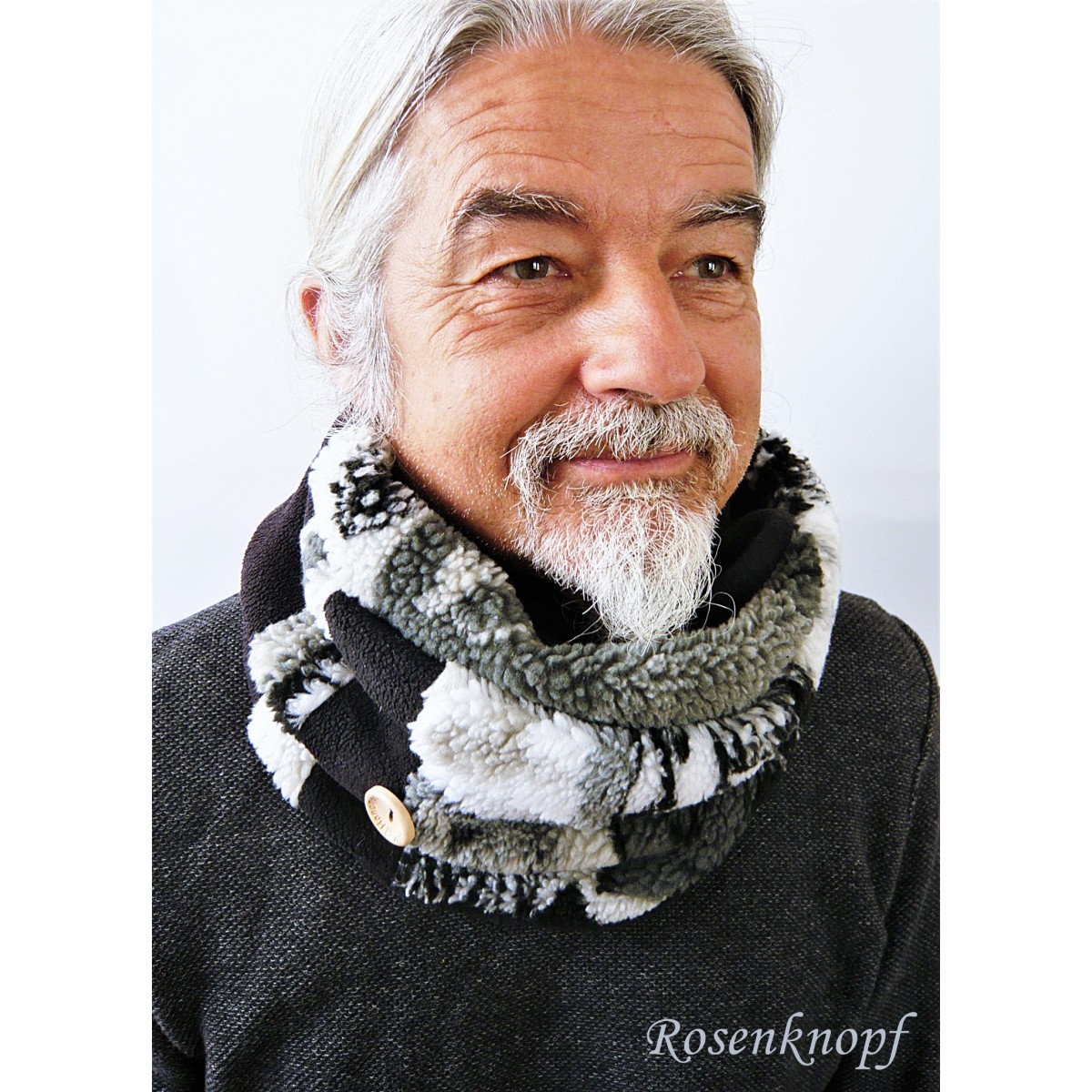 lll➤ Upcycling Schlauchschal/Loopschal für Herren aus kuschelweichem Fleece und Webpelz in den Farben Schwarz, Grau und Weiß.