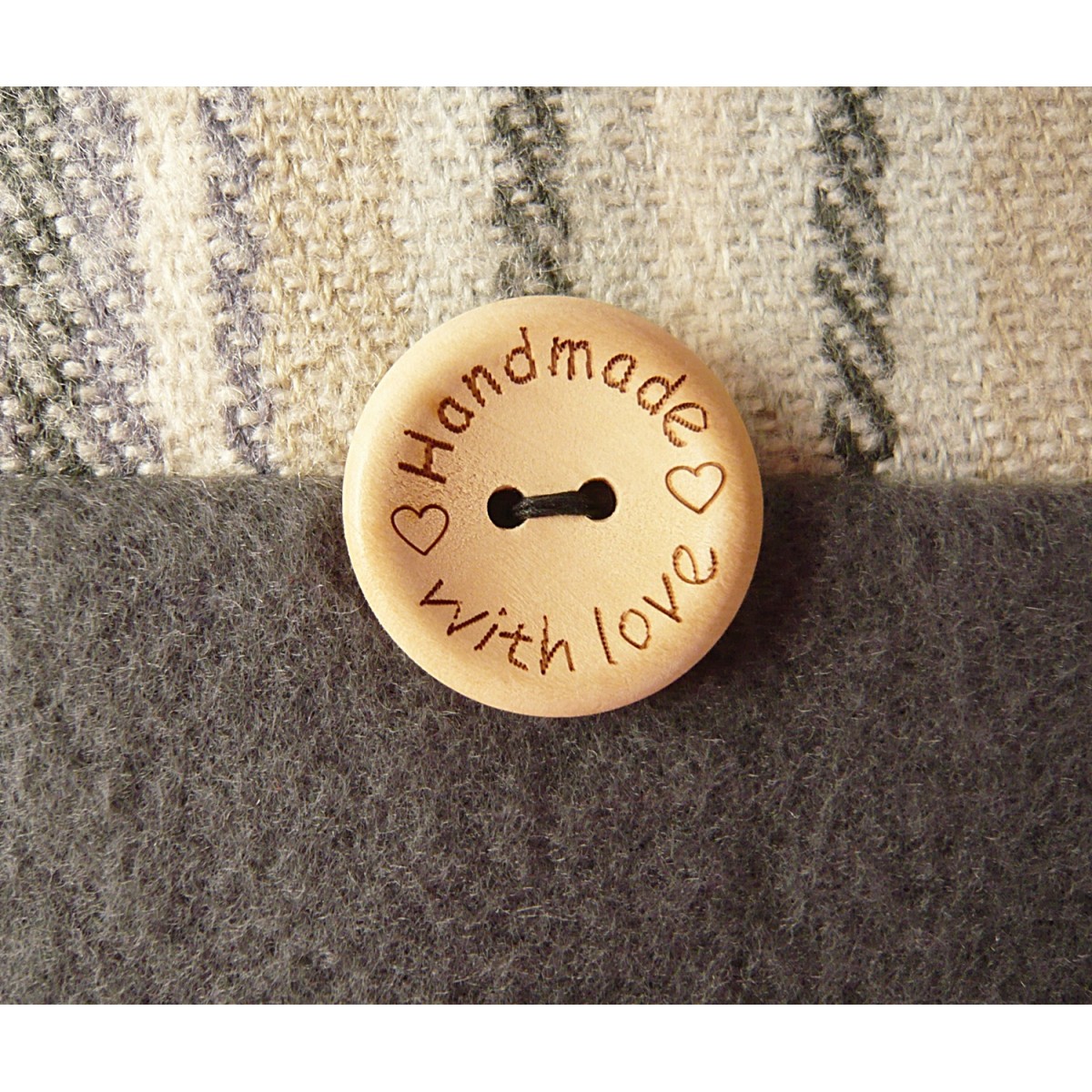 Akzente erhält der Männerschal durch Fleecestreifen in Grau und ein Holzlogo mit der Aufschrift "Handmade with Love".