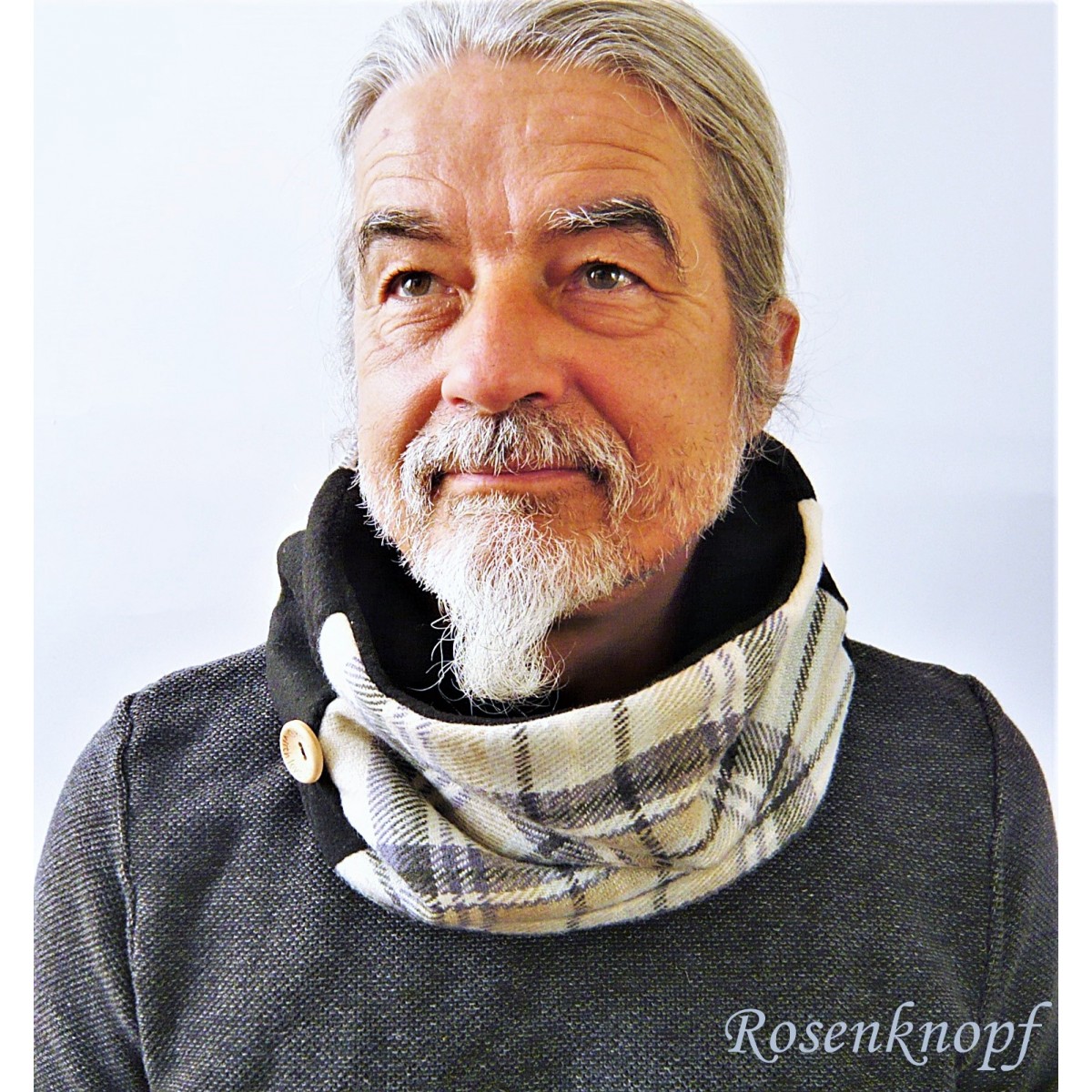 lll➤ Herren Loop/Schlauchschal aus Stoff mit Karomuster in Ivory, Beige und Grau