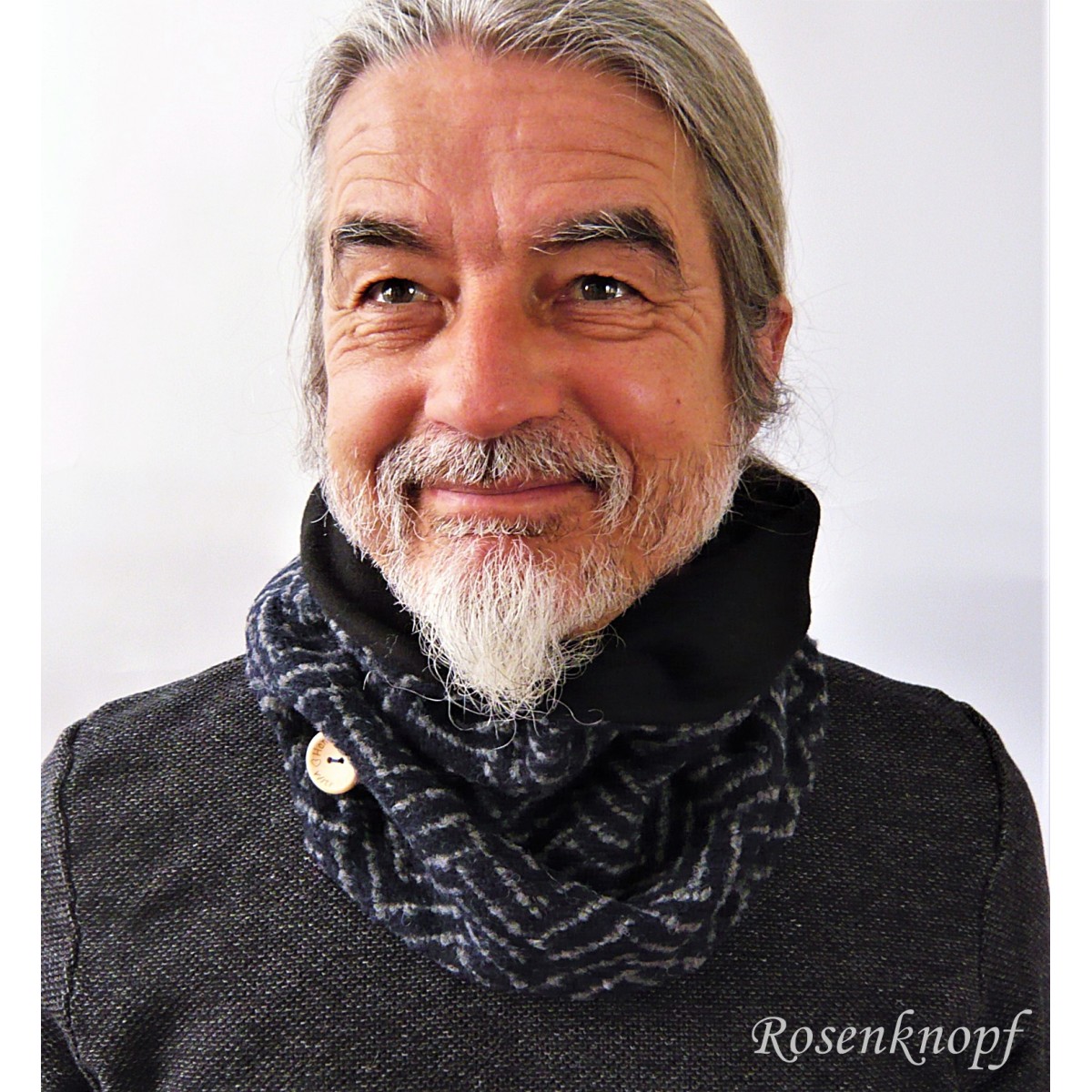 lll➤ Schlupfschal/Loop für Herren aus gemustertem Stoff in Dunkelblau und Grau.