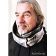 "ANSGER" ist ein einzigartiger Loop für Herren aus ivoryfarbenem Baumwollflanell mit Längs- und Querstreifenmuster in Graublau und Hellbeige.