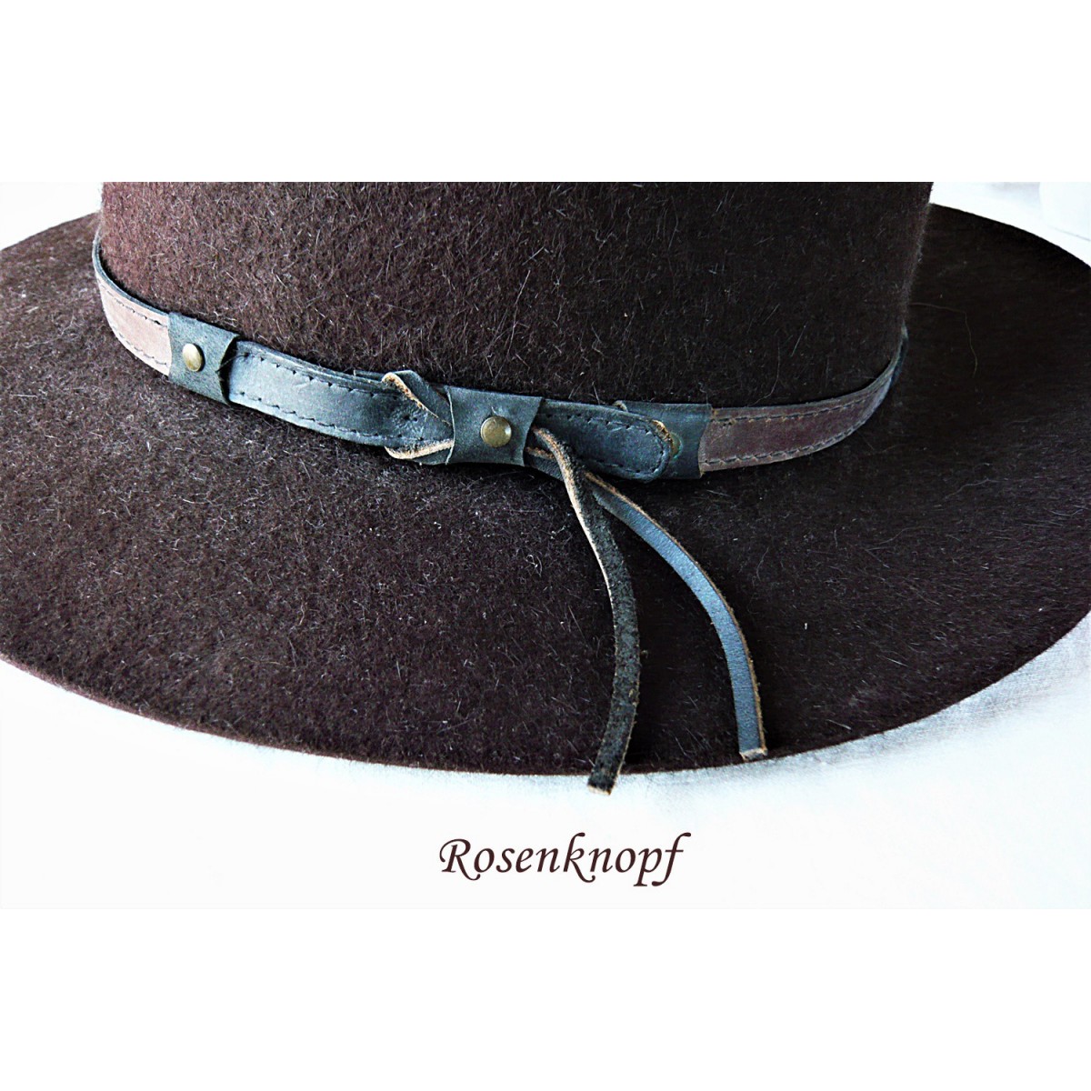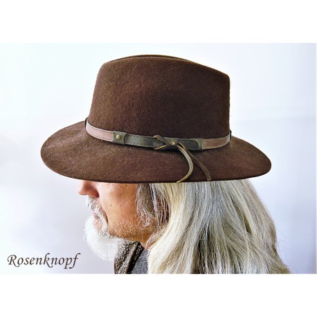 lll➤ Neuwertiger Herren Filzhut in Dunkelbraun mit rundlaufendem Lederband mit eingearbeitete Schlaufe.