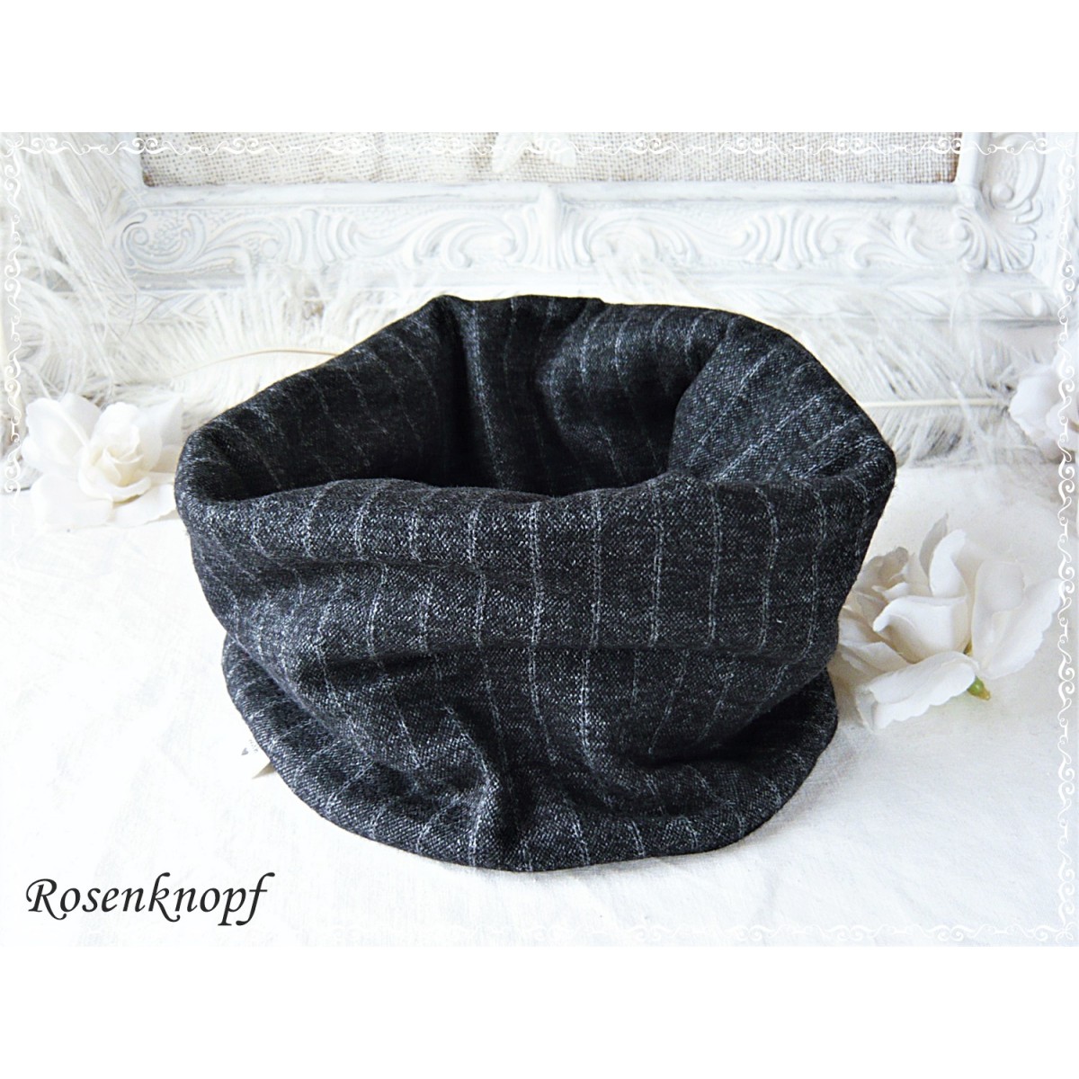 Hier nun ein einzigartiger, casual Schlupfschal für Herren aus elastischem und sehr weichem Stoff in den Farben Anthrazit und Dunkelgrau mit feinem Streifenmuster.