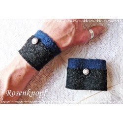 Herrenstulpen/Pulswärmer aus hochwertigem Walk in Grau und dunklem Petrolblau.Der aufgenähte schmucke Vintage Knopf mit silbergrau perlmutt schimmernder Oberfläche setzt bei diesen Handmanschetten maskuline Akzente. Manschetten sind ein schönes und besonderes Geschenk für Ihren Partner, Freund, Bruder, Sohn oder Vater, das sich immer größerer Beliebtheit...