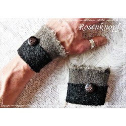 UNIKAT Herrenstulpen/Pulswärmer mit Sichtnaht, die aus hochwertigem Walk in Grau und Schwarz kombiniert wurden. Als kleiner Hingucker ist bei diesen Männerstulpen ein schlichter Knopf aufgenäht, der bei Nichtgefallen aber gerne abgetrennt werden kann.