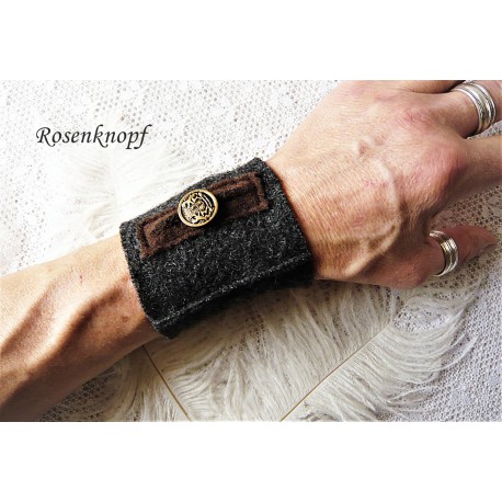 Ein brauner Walkstreifen mit schmuckem Vintage Knopf verziert, setzt bei diesen Manschetten maskuline Akzente.