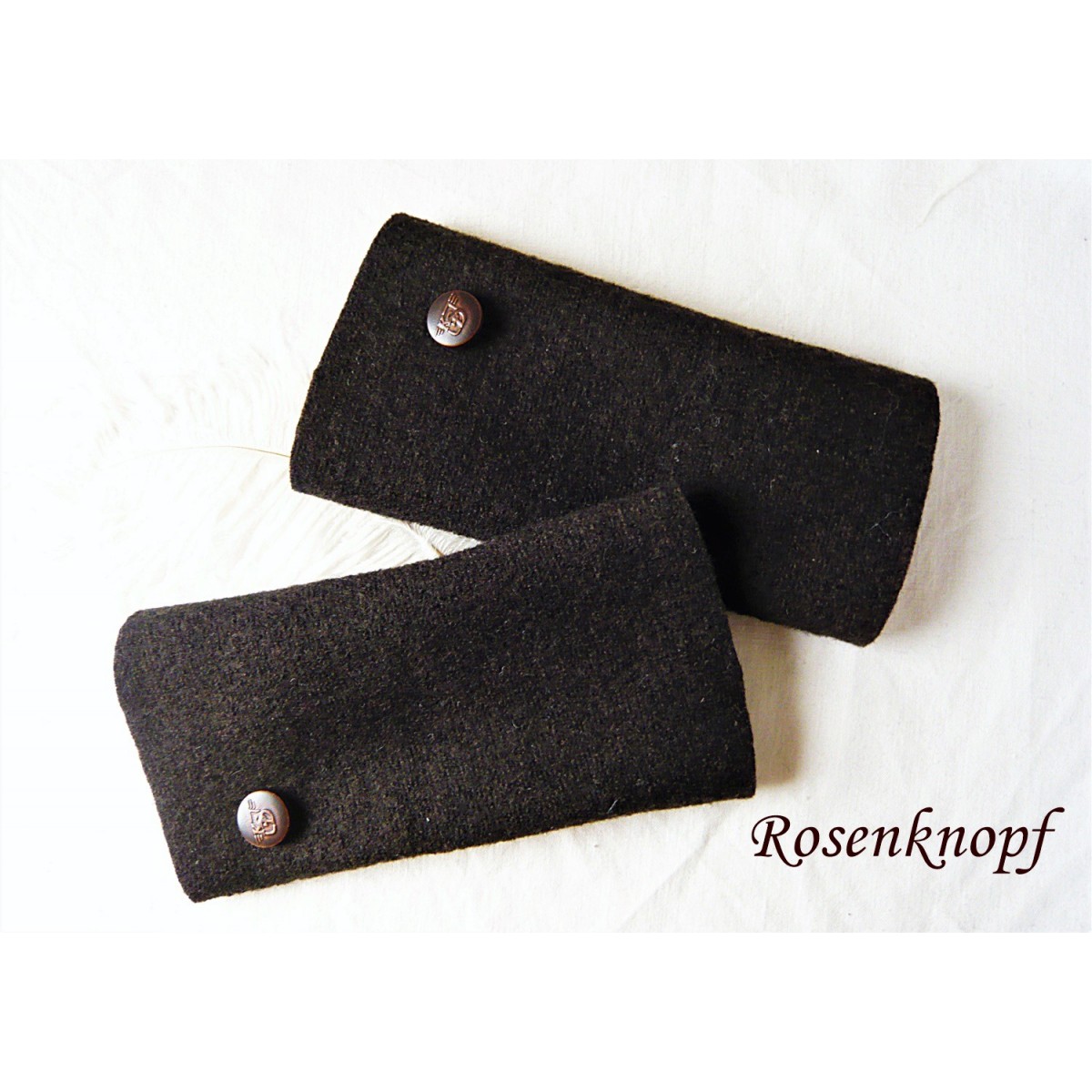 lll➤ Armstulpen/Pulswärmer für Herren aus Walk in Dunkelbraun.