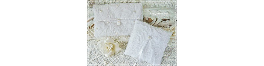 Natürlich darf für Ihre perfekte Trauung ein Ringkissen für Ihre Trauringe nicht fehlen, auch hier finden Sie daher eine große Auswahl aus edlen Materialien, verziert mit Spitzen oder /und mit Perlen zart bestickt.