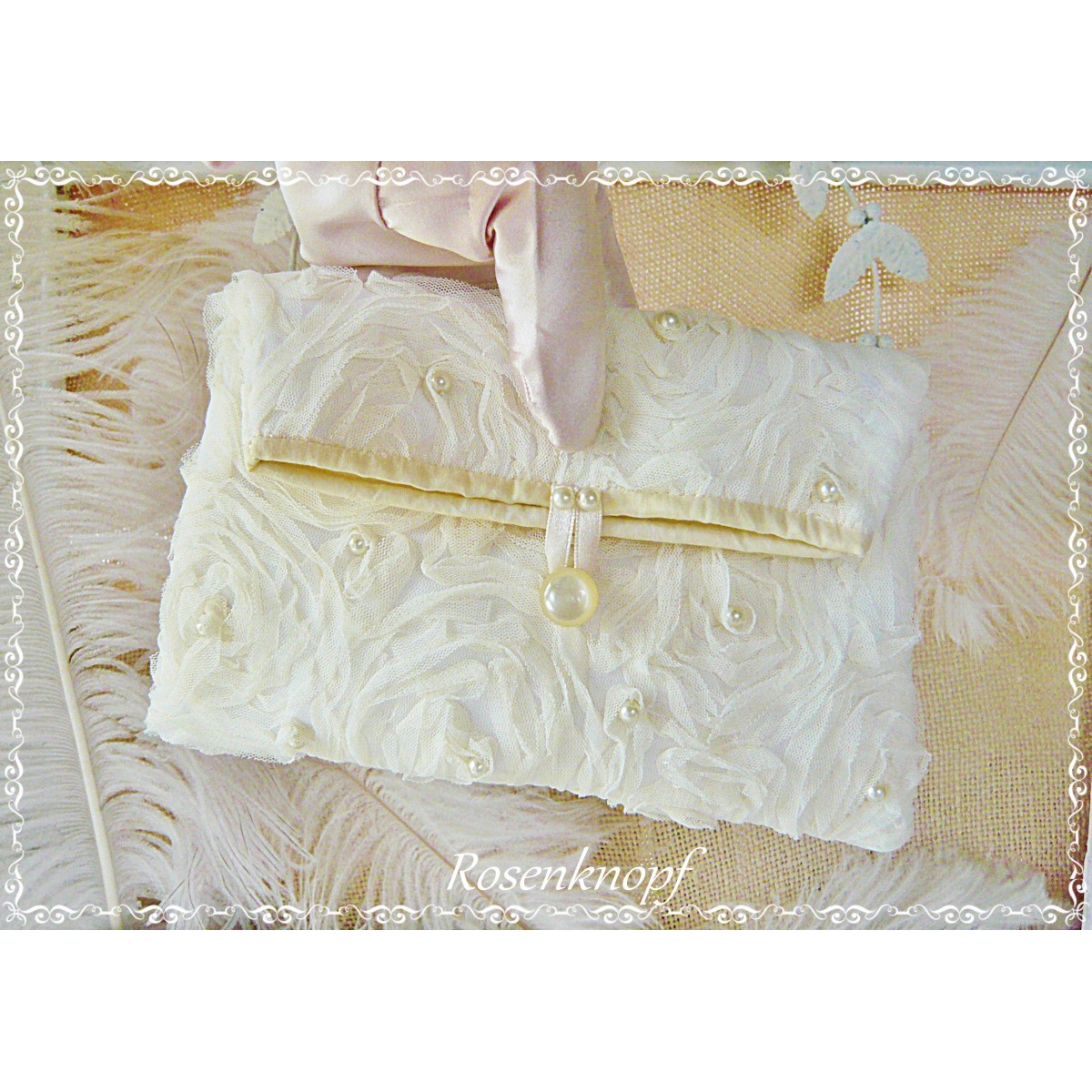 Passend zu diesem Traukissen gibt es in meinem Shop eine Tasche und auch eine kleine Clutch (siehe Fotos).
