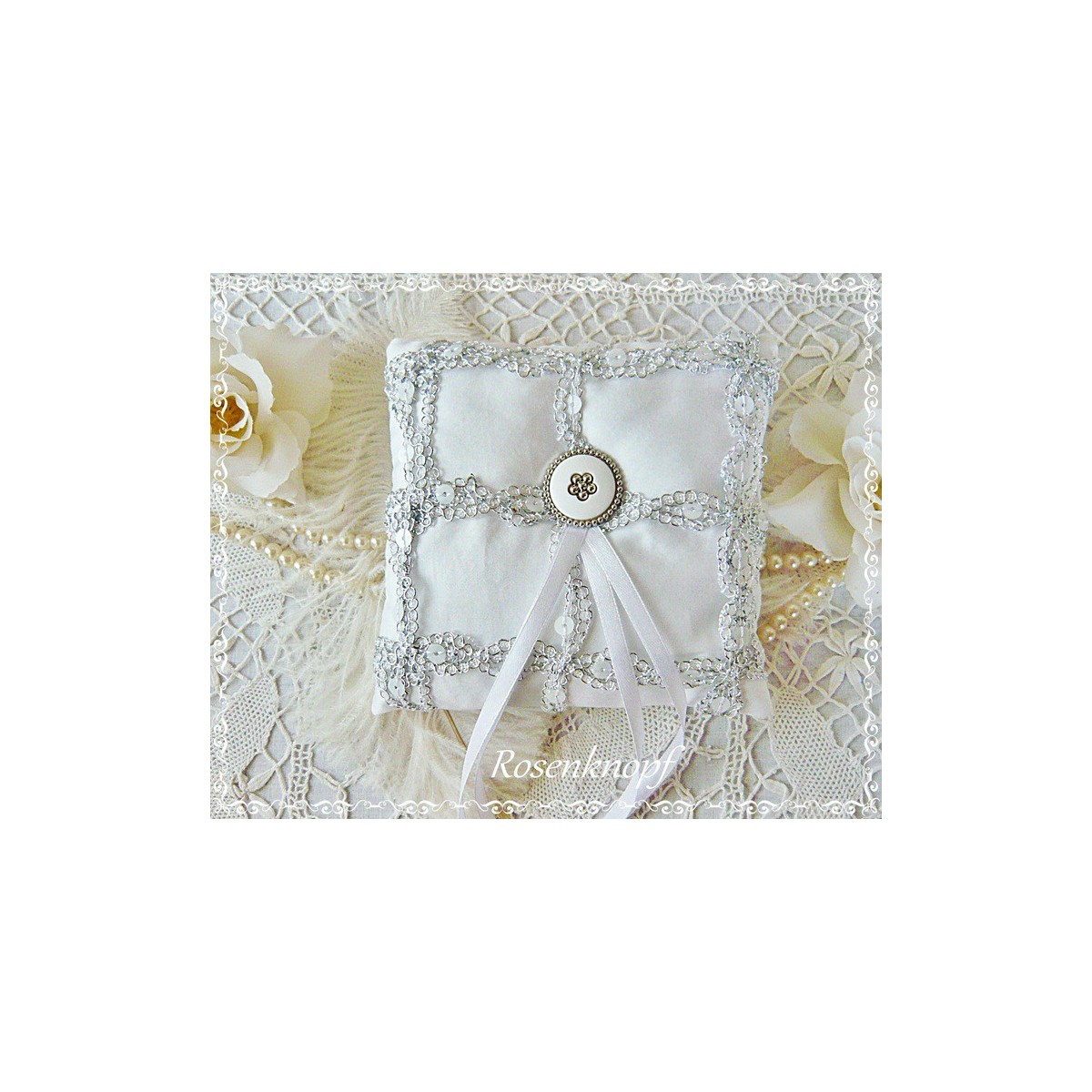 "SILVERY" ist ein edles und einzigartiges Ringkissen für Ihre Hochzeit aus zart schimmerndem Satin in Reinweiß♥