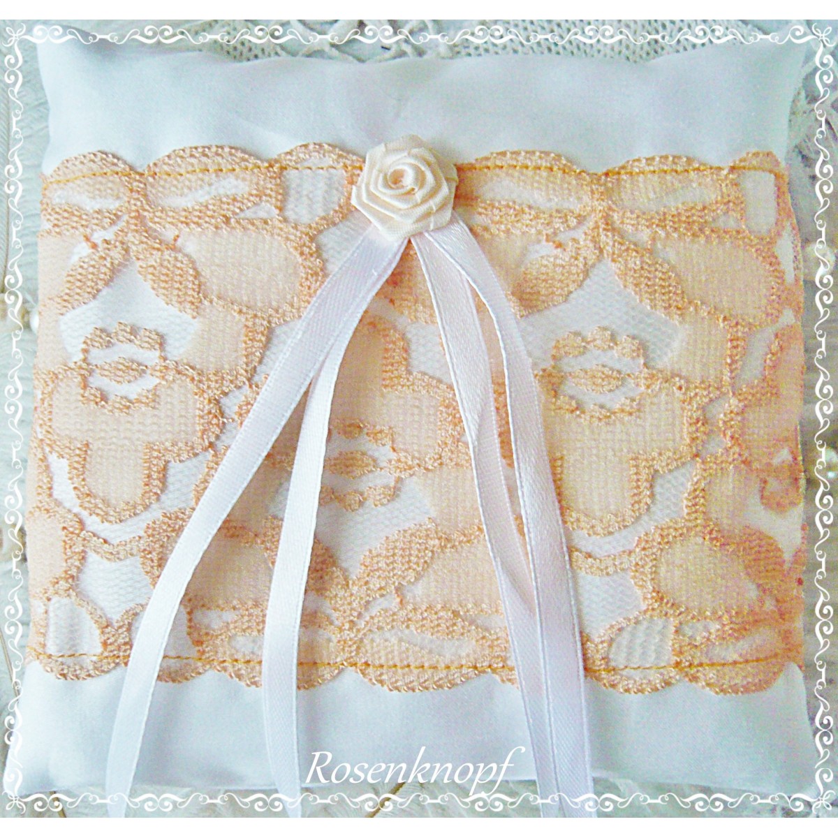 "Peachy White" ist ein romantisches und einzigartiges Ringkissen für Ihre Hochzeit das aus aus zart schimmerndem Satin in Weiß und Spitze gefertigt wurde.