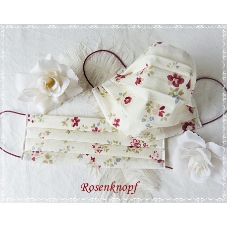 Sie wurde zweilagig aus kochfester Baumwolle genäht und kann sowohl mit dem Blumenmuster oder uni in Vanille getragen werden.