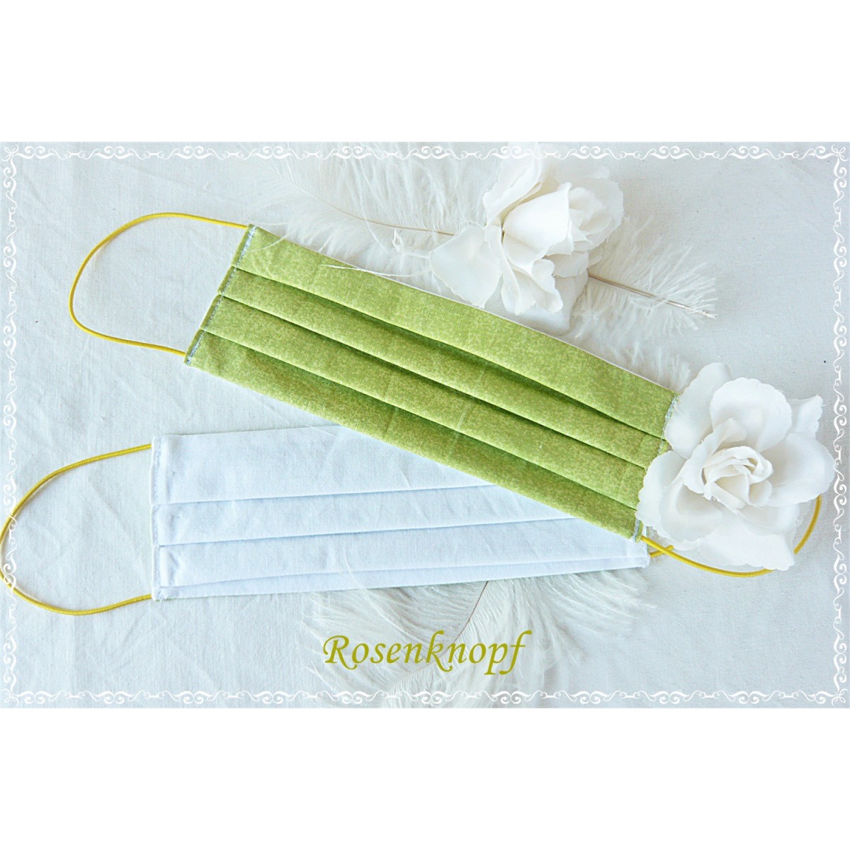 Behelfsmaske Hellgrün Weiß Mundbedeckung Mundmaske Kochfest