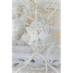 lll➤ Zauberhafte, weiße Eier im Shabby Stil. Durch eine spezielle Technik entsteht die reizvolle, reliefartige Struktur. Diese Kunststoffeier wurden mit alten Buchseiten, einer Rosette aus Plauener Spitze und Wachsperlen verziert. Sie sind ein edler Osterschmuck der zum Shabby- Vintagestil passt. Die Eier wirken im Osterstrauß ebenso, wie in einem mit...