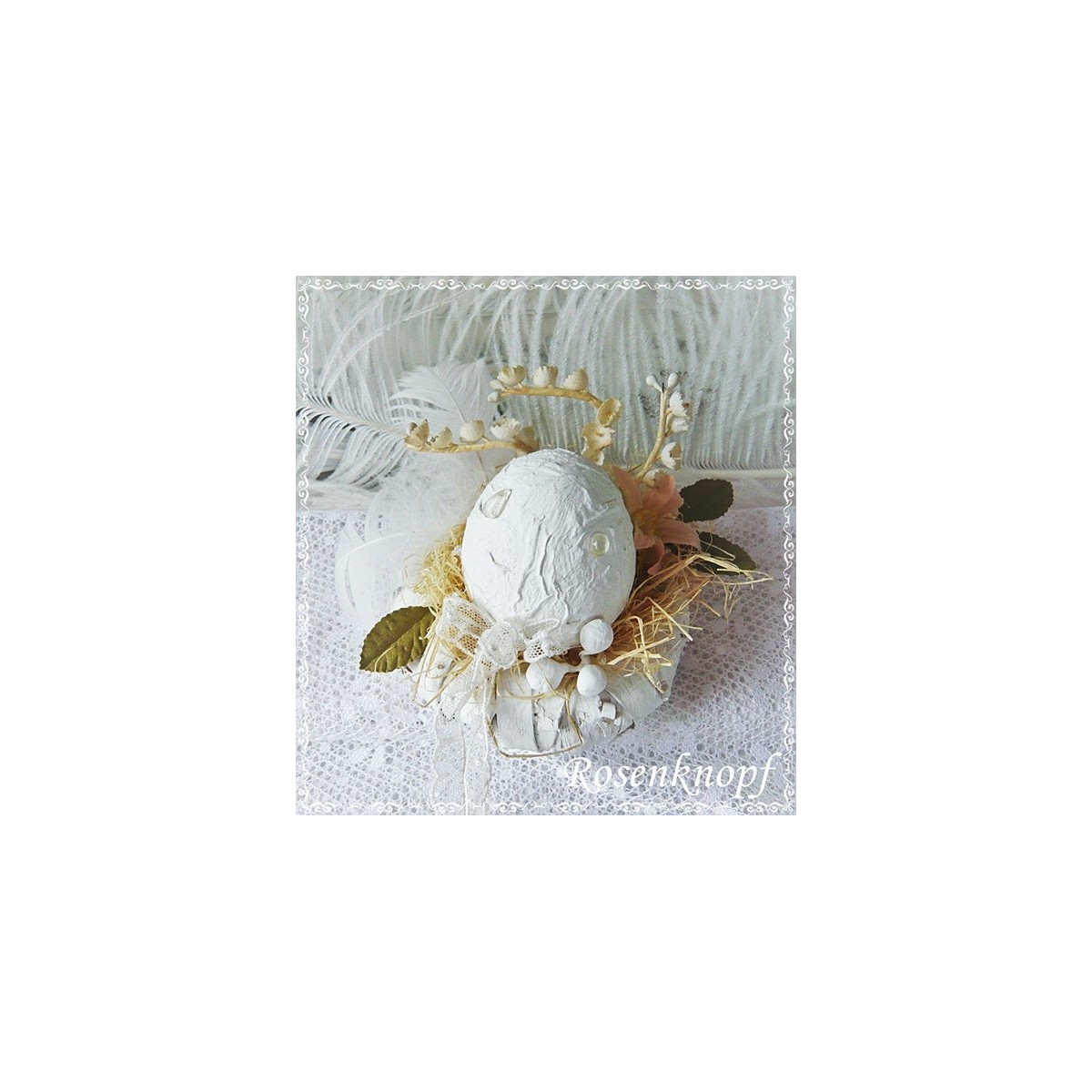 Das Ostergesteck passt perfekt zum Brocante- Shabby- Vintage oder Landhausstil.