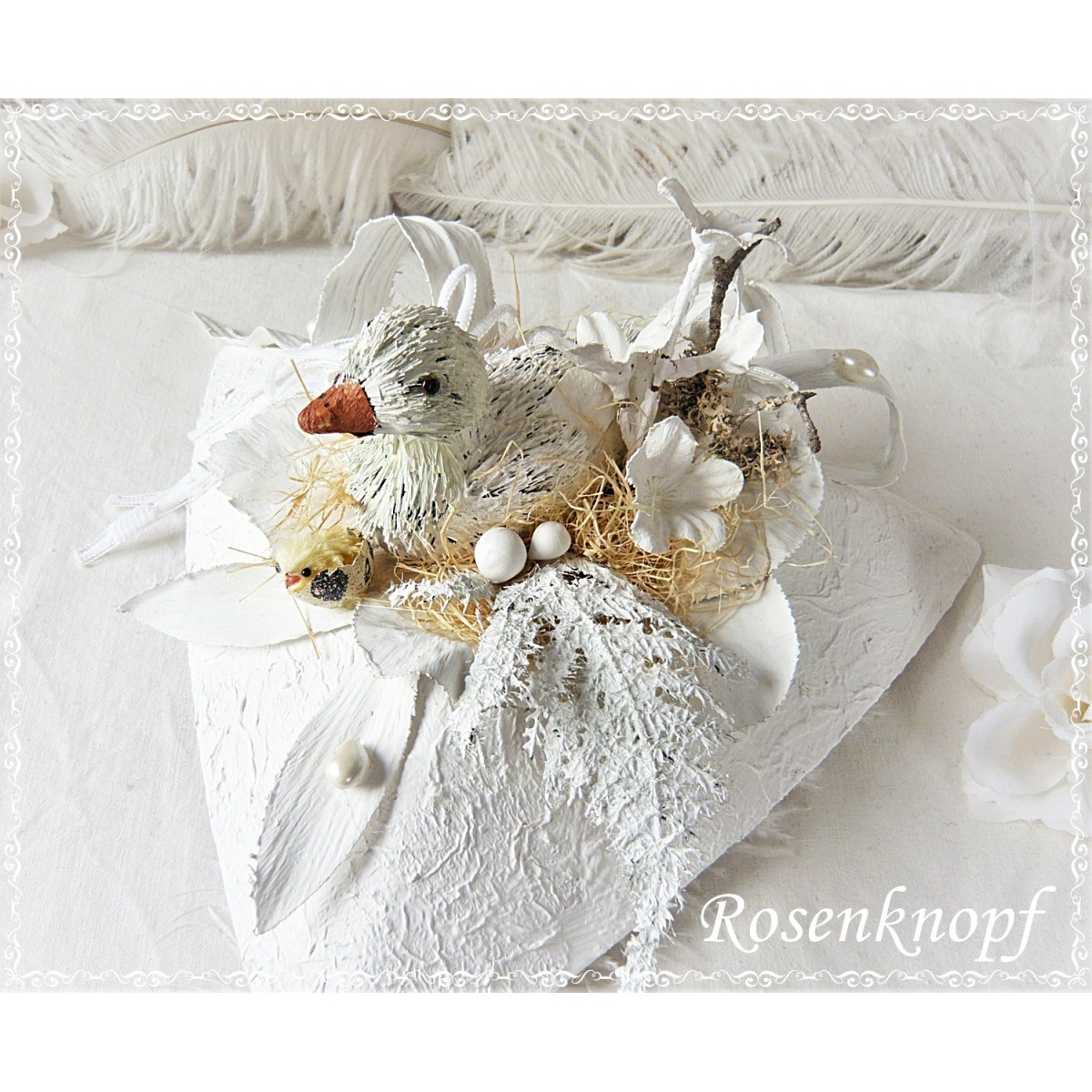 Diese aparte Frühlingsdekoration passt perfekt zum Brocante- Shabby- Vintage oder Landhausstil und eignet sich als Geschenk zum Muttertag, Valentinstag, einem Geburtstag oder Ostern.