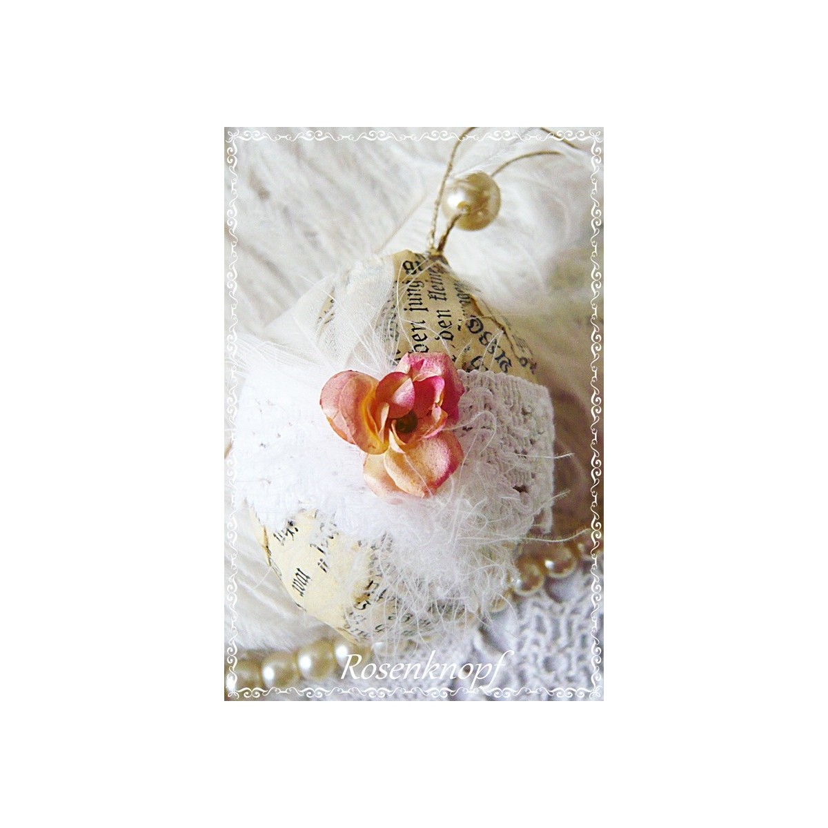 - Material: Plastikeier, Alte Buchseiten, Vintage Spitze, Hühnerfedern, Papierblumen, Schnur