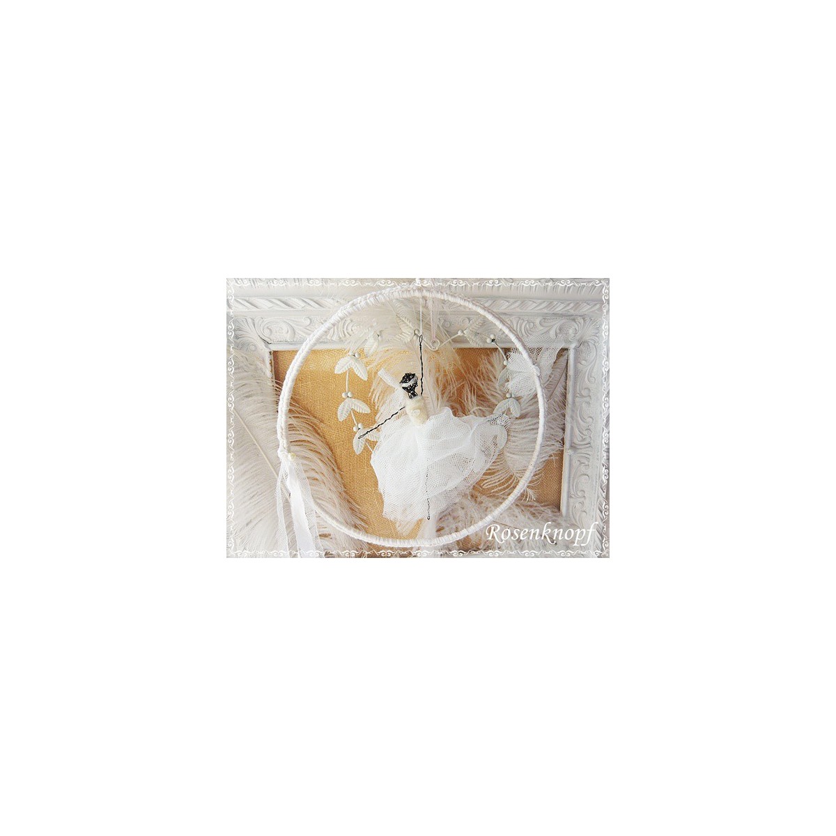 Romantische Akzente erhält die Primadonna durch den Vintage Knopf und Tüllschlaufe.