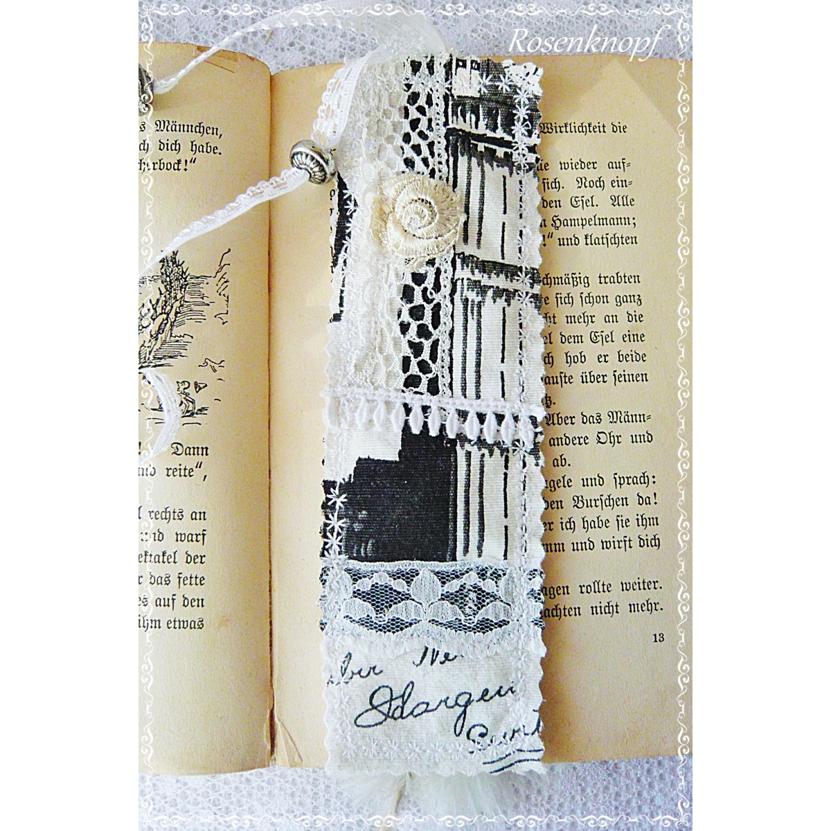 Im Shabby Stil mit viel Spitze und silberfarbenen Perlen im Antik Look verziert, wird Bücherlesen mit diesem Lesezeichen zum reinsten Vergnügen!