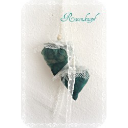 UNIKAT♥ Diese mit Lavendel gefüllten Beeren in Bordeaux umweht der betörende Duft der Provence. Die Lavendelfelder Südfrankreichs vor Augen, erwacht in uns das mediterrane "Savoire Vivre". Romantische Akzente erhalten die Lavendelbeeren durch ihre Käppchen aus Walk in Mint und weißem Tüll, den Wachsperlen und der Spitzenborte zum Aufhängen.