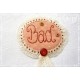 Romantische Akzente erhält das Schild durch Holzblümchen, Perlen und einem kleinen Knopf.