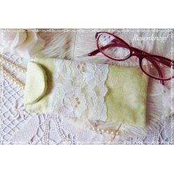 ♥Unikat♥ Zauberhaft verspieltes Brillenetui im angesagten Shabby Stil, ideal für eine stoß- und kratzempflindliche Sonnenbrille oder die Lesebrille. Das einzigartige Stoffetui "Noely" wurde aus hellgrünem Baumwollstoff genäht, mit farblich passendem Fleece gefüttert und mit BW-Vlies unterlegt. Romantische Akzente erhält die Brillenhülle durch Spitze...