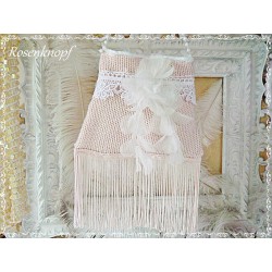 Elegant romantische Clutch in Trapezform im angesagten Shabby Stil, ideal für unentbehrliche Kleinigkeiten wie Handy, Geldbeutel, Schlüssel etc. Sie wurde aus kostbarem und sehr altem, handgewebtem Leinen in Ivory genäht.Eine zarte, mit Perlen verzierte Spitzenauflage mit Rosenmuster setzen bei dieser Damenclutch Akzente. ♥Eine schmucke Brautclutch...