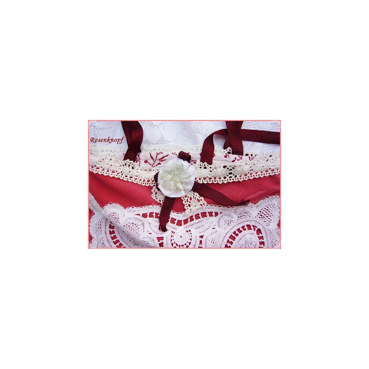 Zauberhaft romantische und einzigartige Handtasche in Rubinrot und Weiß für die besonderen Momente im Leben.