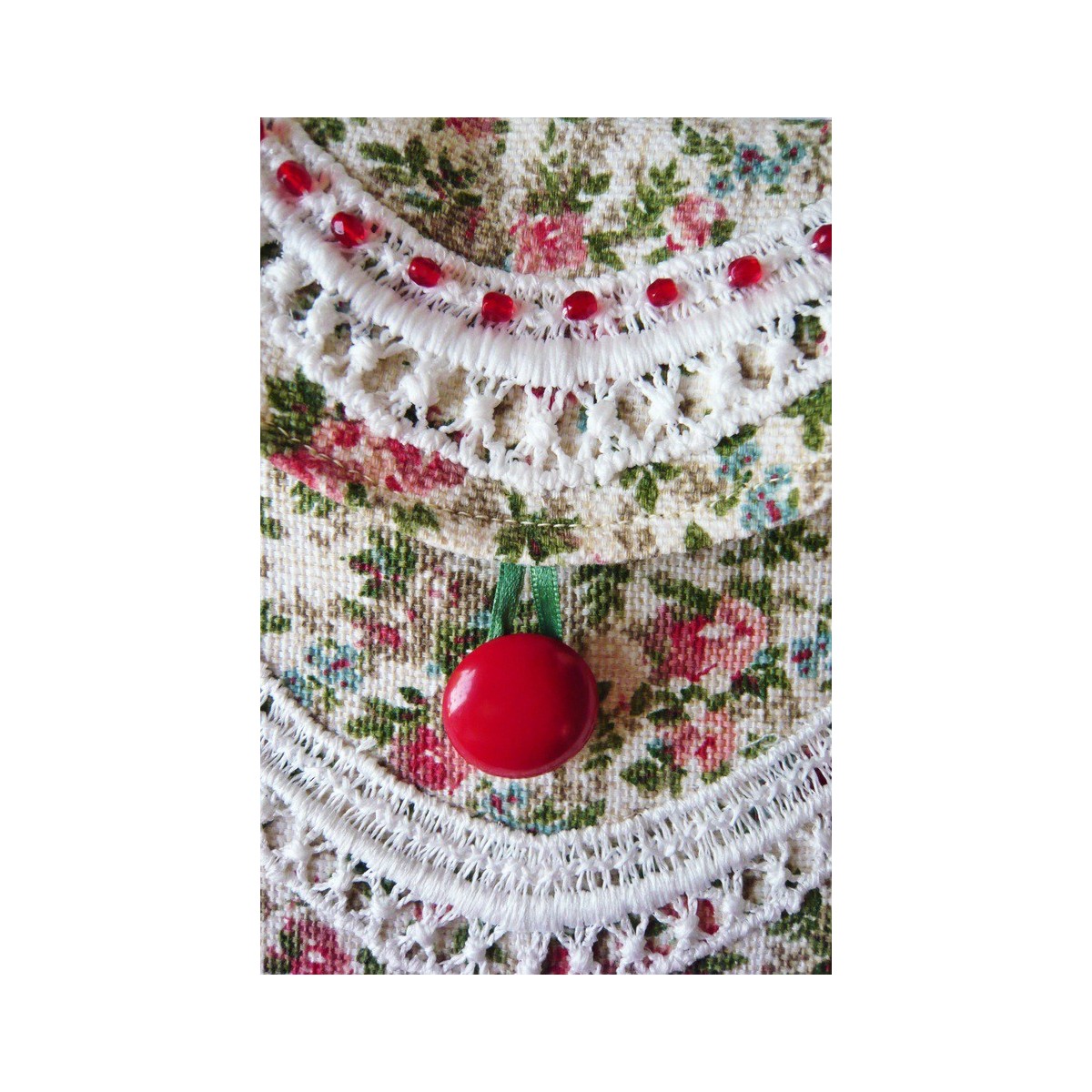 Gefertigt wurde diese Kulturtasche aus Leinen in Ivory mit Streublümchen in Rot und Grün.