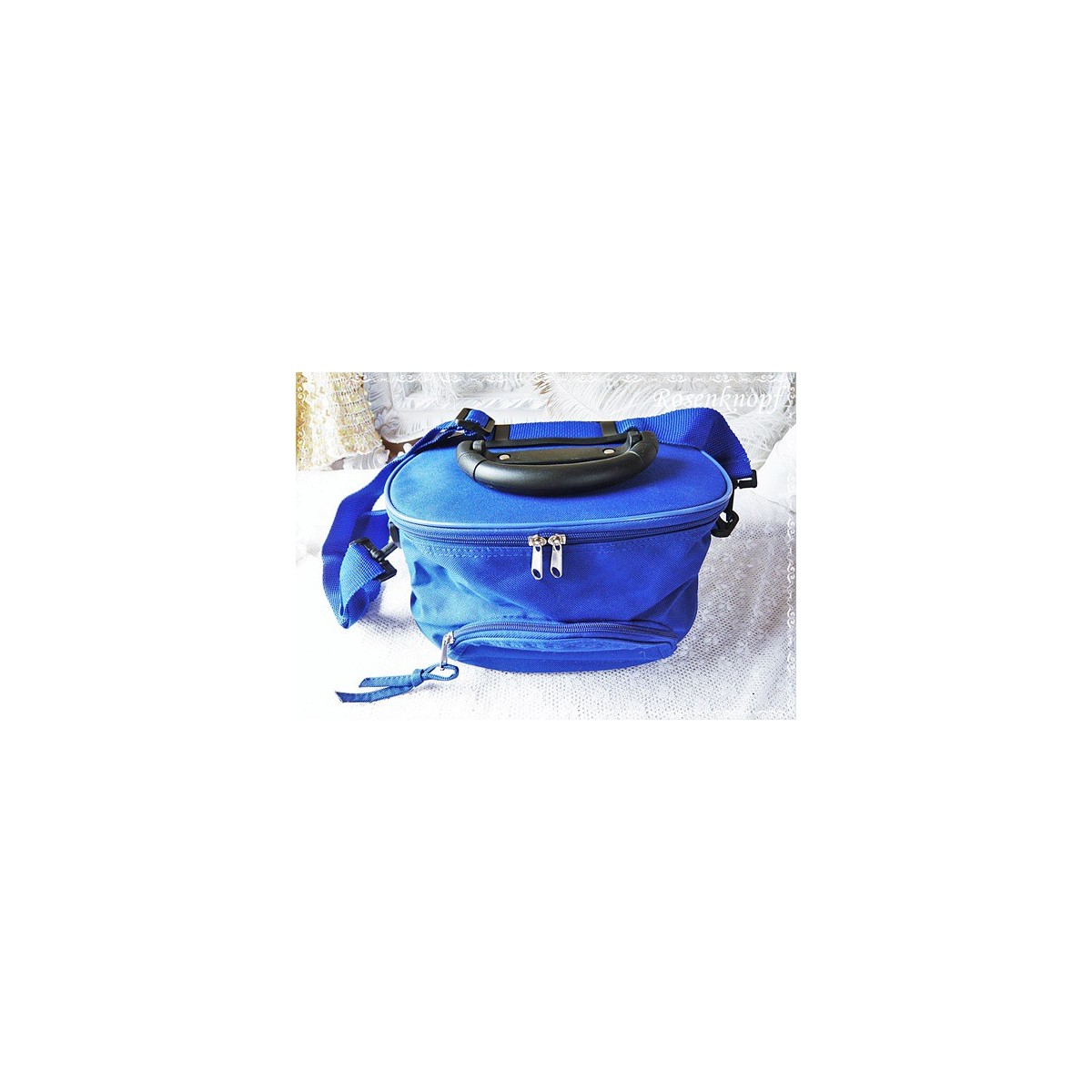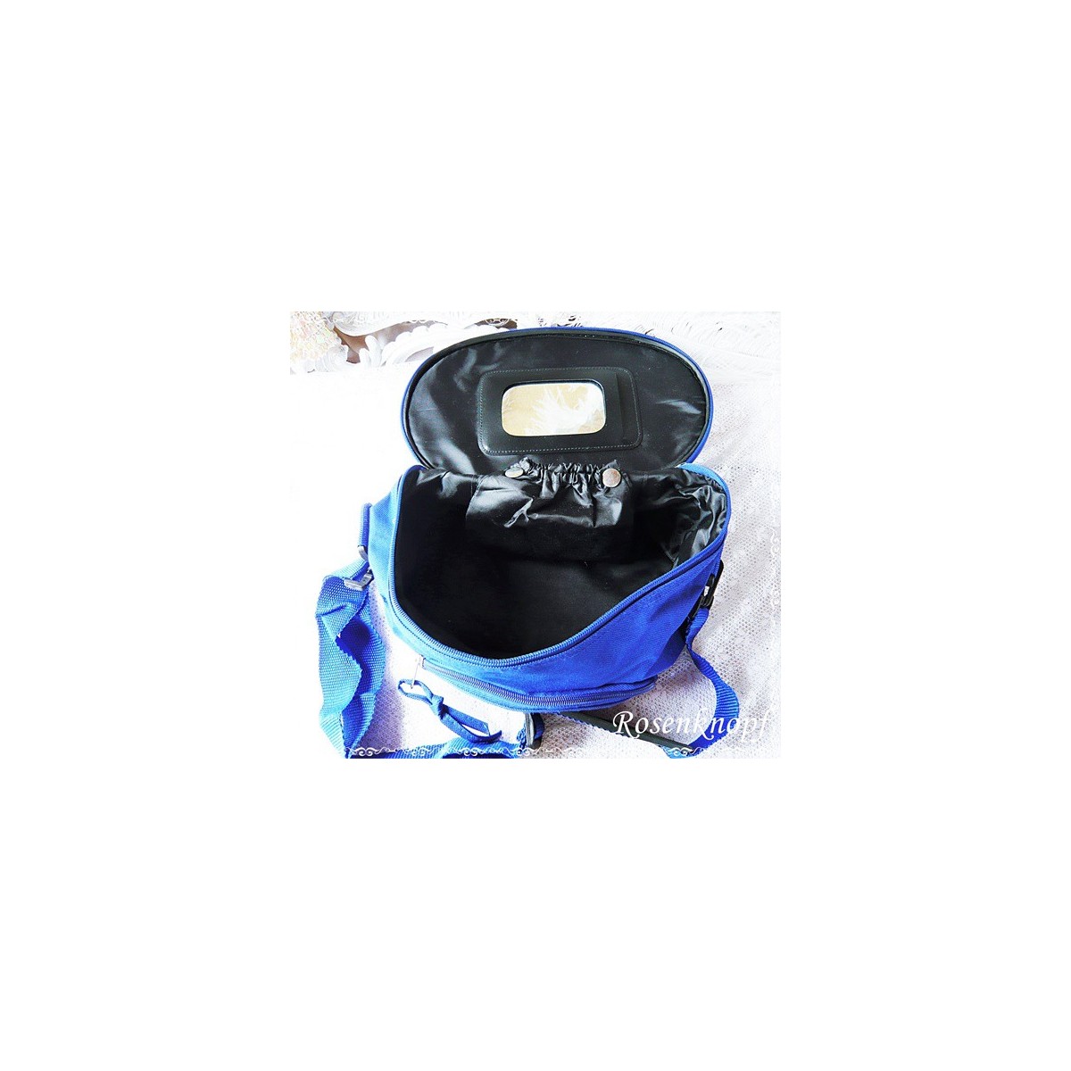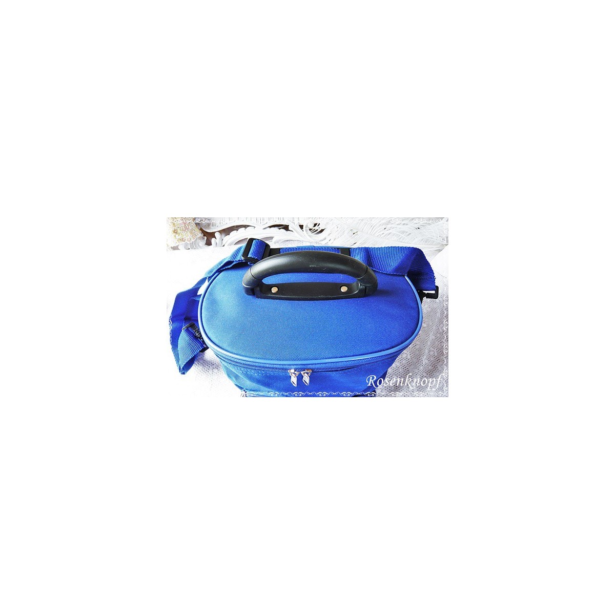 Durch den Umhängegurt sowie dem sehr stabile Griff kann diese dunkelblaue Tasche bequem getragen werden.