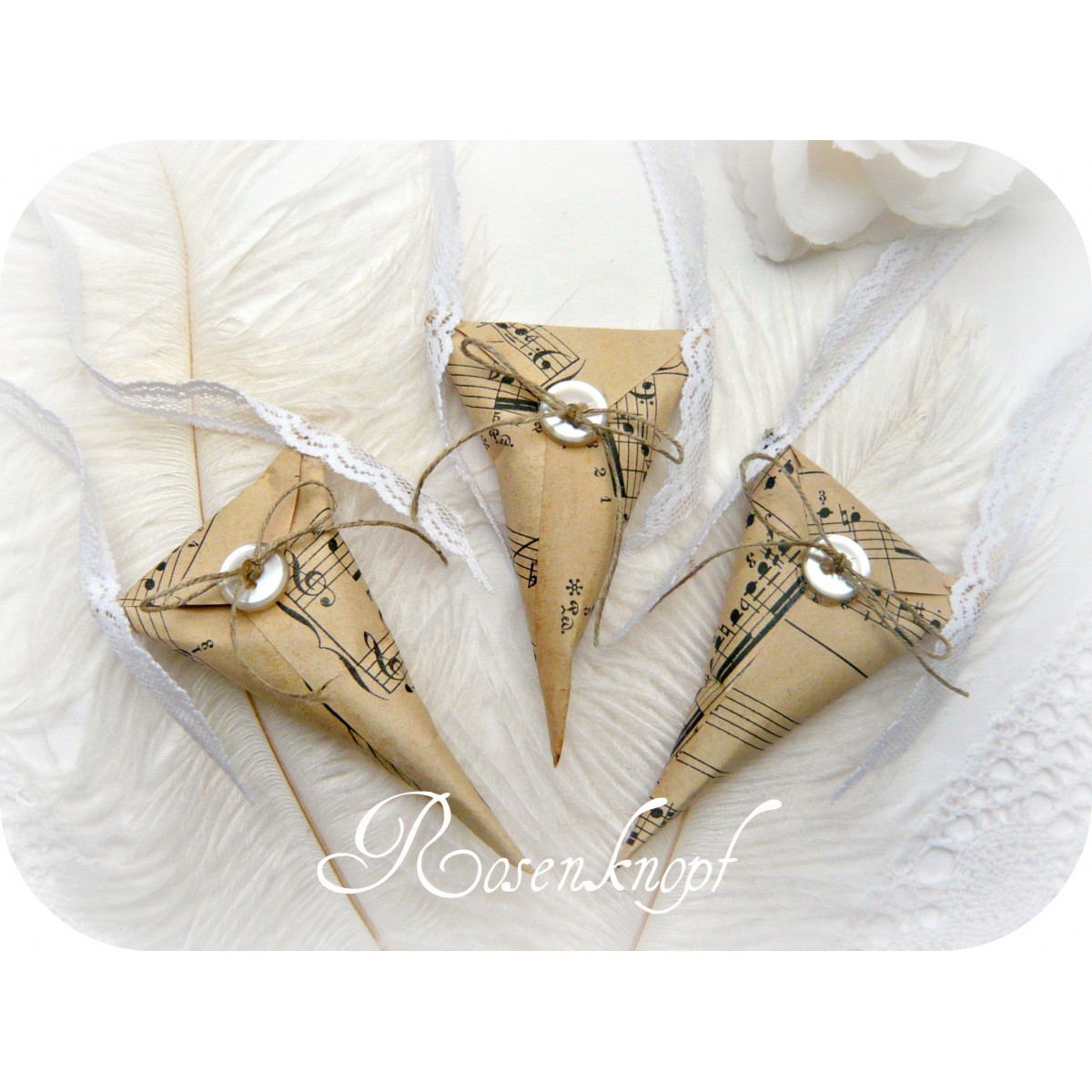 Aus altem Notenpapier gefertigt, ist dieses Tütchen eine wunderschöne Deko die perfekt zum Vintage- Shabby- oder Landhausstil passt♥