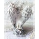 Die Figur hat große Flügel, die schmuck mit silberfarbenem Glimmer bestreut wurden und trägt in seinen Armen einen Stern und eine Taube